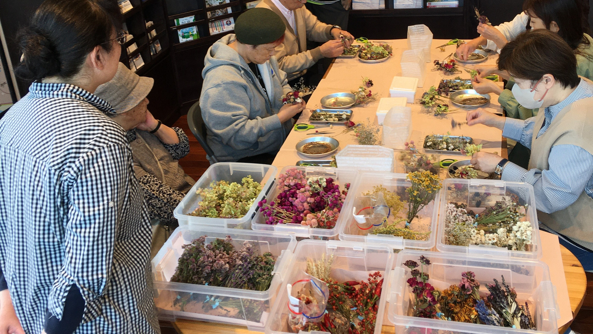 アトリエetsuko field & 西山蝋燭工房ではドライフラワーのブーケやリース作り、キャンドル作り、アロマディフューザー作りなど様々なプランをご用意して出張教室も行っています。施設様でのイベント・企業様の福利厚生プラン・学校での手作り教室などなどご依頼も多岐にわたります。